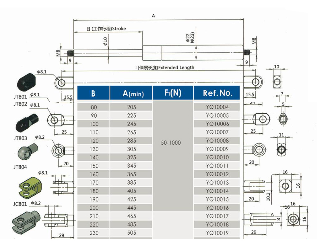 舉升氣彈簧YQ 10/22-13